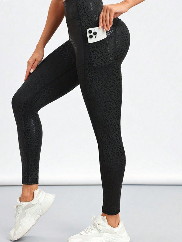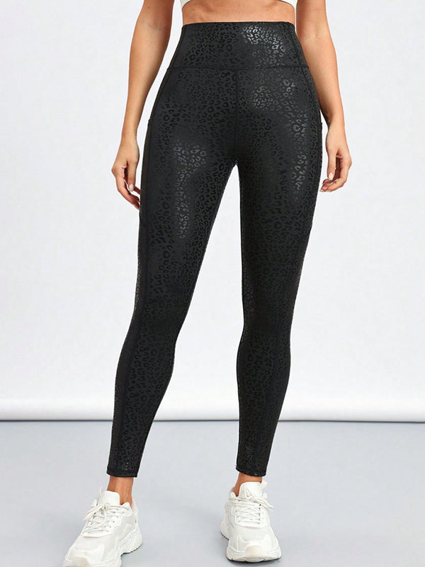 ZASUWA Female Sexy Faux Leather Leopard Print Pocket Leggings