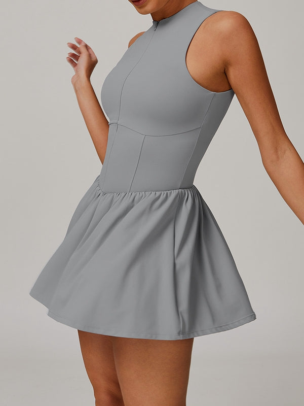 ZASUWA Female Solid Color Zipper Corset 2 in 1 Quick-dry Dress