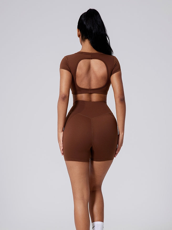 ZASUWA Female Deep V Solid Color Backless Short Sleeves ZASUWA Female Deep V Solid Color Backless Short Sleeves