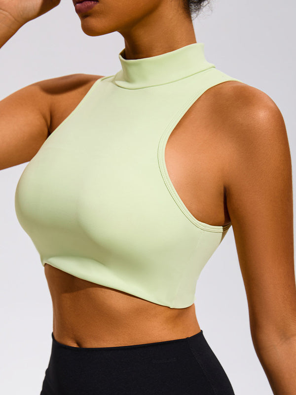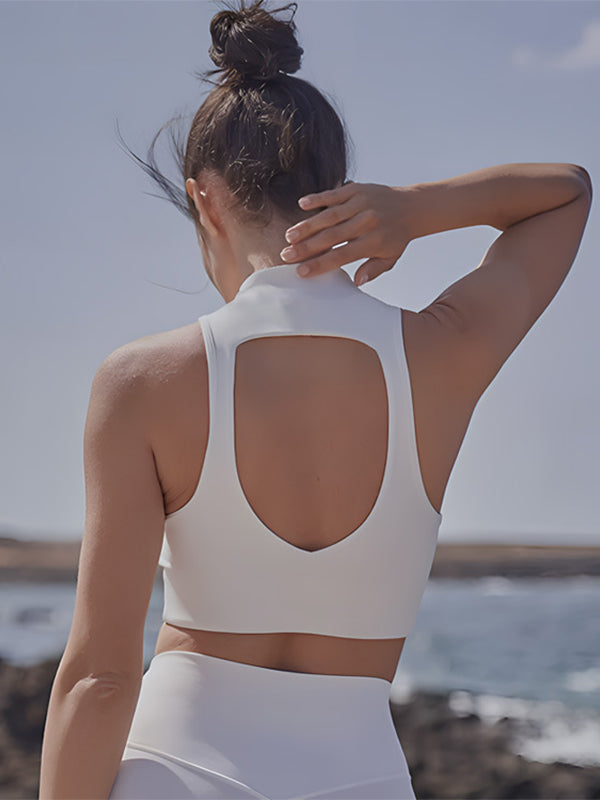 ZASUWA Female Sexy Solid Color Hollow Out Stand Up Collar Tank